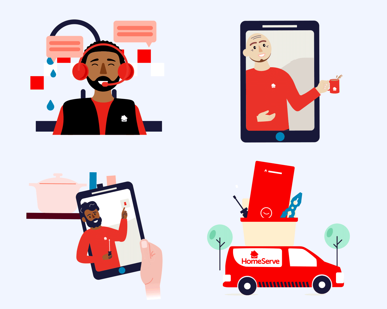 A mix of print and digital creative for HomeServe, the experts in home emergency cover. From social media and PR campaigns, to email and direct mail, I’ve been involved in the evolution of the brand in the marketing world and integrated illustration fully into our visual brand language.